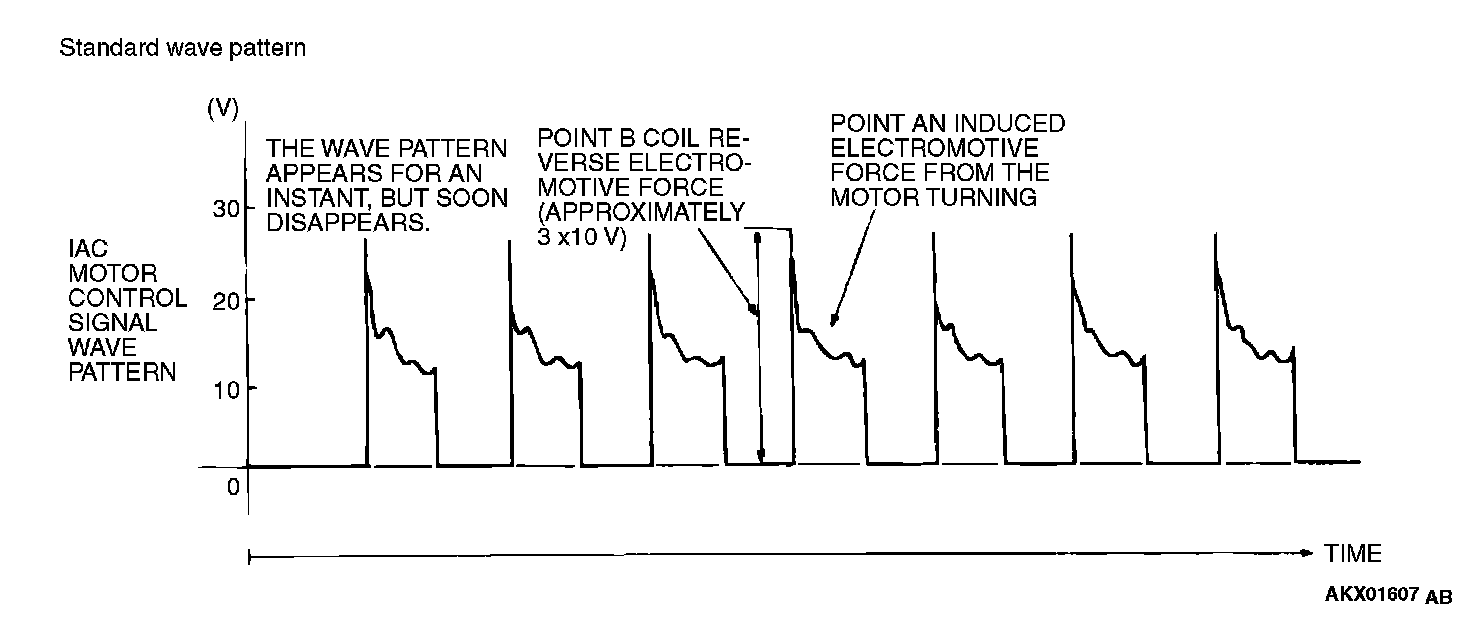 1. Check that the standard wave pattern appears when the idle air control motor is operating.