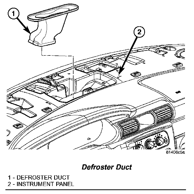 1. Position the defroster duct onto the top of the instrument panel.
