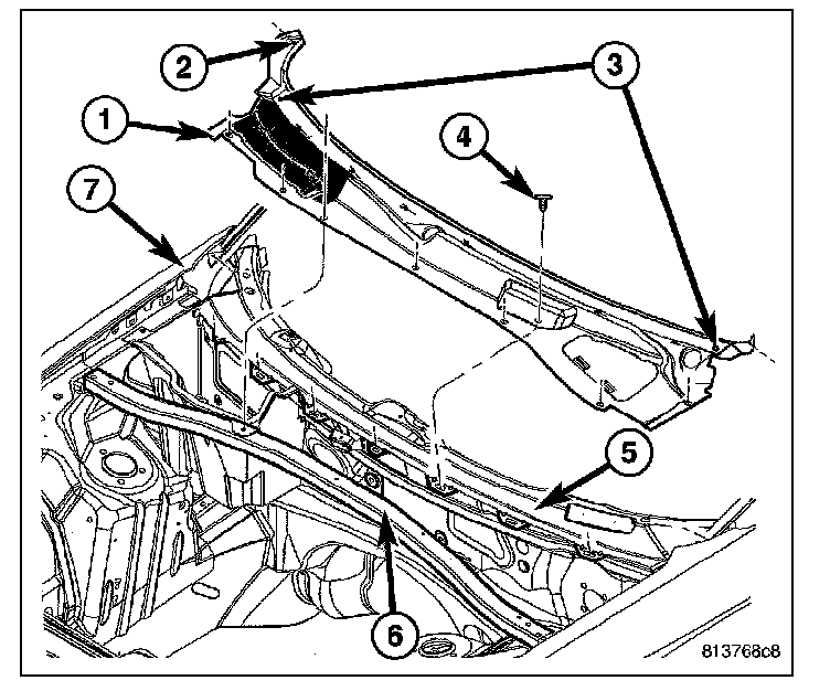5. Install the cowl panel (1).