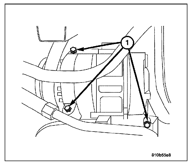6. Remove the three compressor bolts (1) attaching it to the engine block.