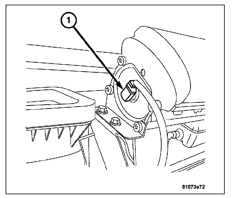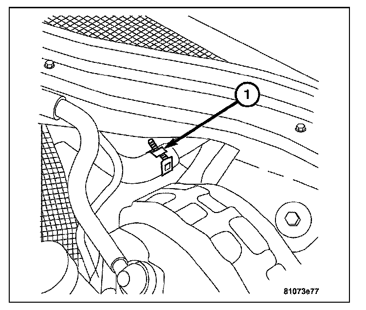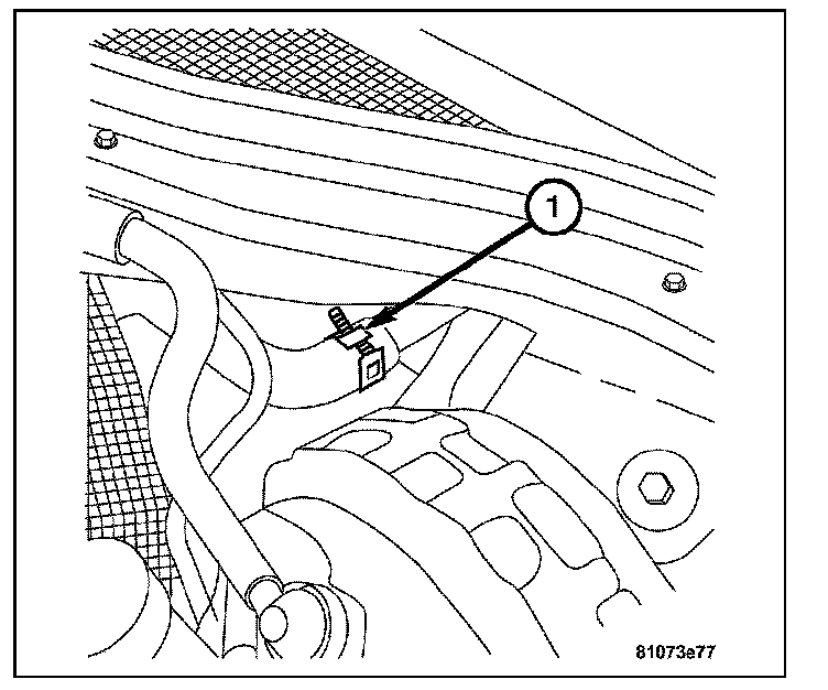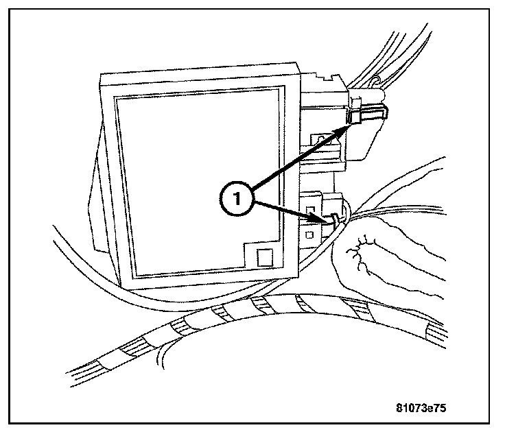 4. Install the harness connector on heater core temperature sensor located on the front of the HVAC housing. Then install the evaporator temperature sensor (1) to the HVAC case.