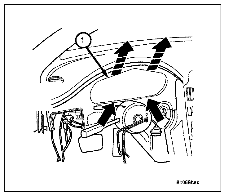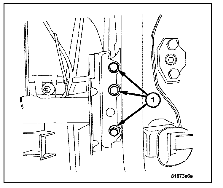 8. Install the bolts (1) attaching the instrument panel support to the front of the vehicle bulkhead.