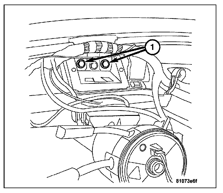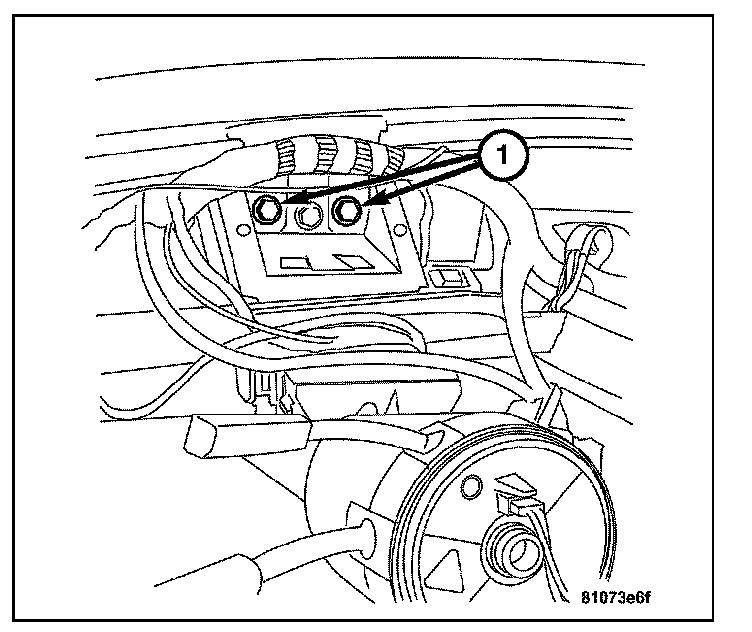 14. Install the bolts and nuts (1) attaching the steering column to the instrument panel support.