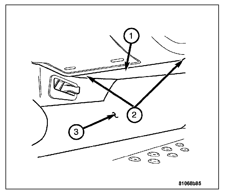 THE FASTENERS, SCREWS, AND BOLTS ORIGINALLY USED FOR THE RESTRAINT SYSTEM COMPONENTS HAVE SPECIAL COATINGS AND ARE SPECIFICALLY DESIGNED FOR THE RESTRAINT SYSTEM. THEY MUST NEVER BE REPLACED WITH ANY SUBSTITUTES. ANY TIME A NEW FASTENER IS NEEDED, REPLACE IT WITH THE CORRECT FASTENERS PROVIDED IN THE SERVICE PACKAGE OR SPECIFIED IN THE DAIMLERCHRYSLER MOPAR PARTS CATALOG.