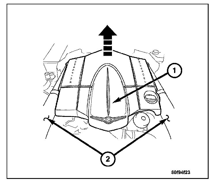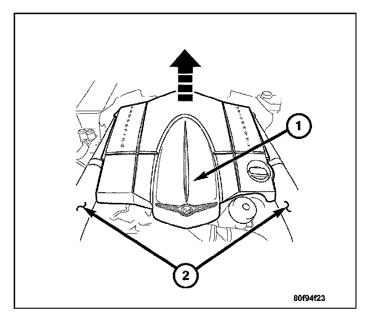 1. Remove the engine cover (1). Grasp both corners of the engine cover and pull up firmly.