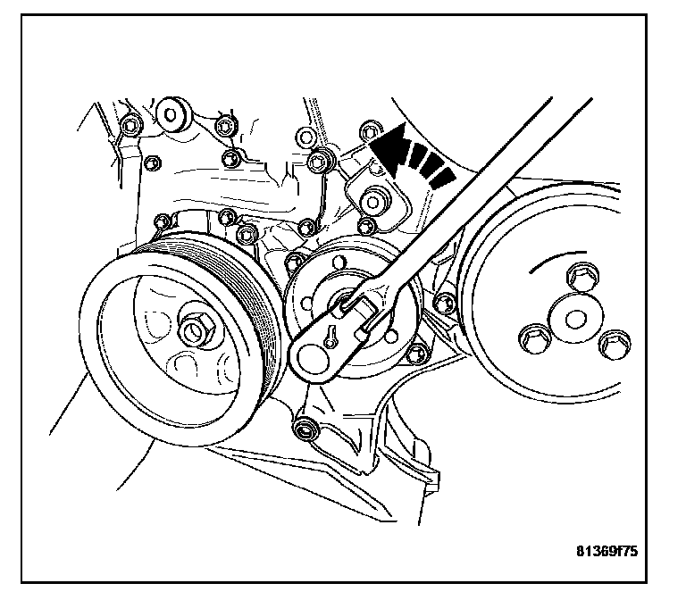 2. Rotate the belt tensioner counterclockwise and release the tension on the accessory drive belt.