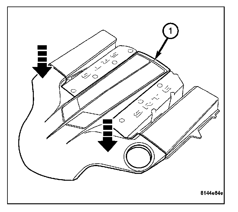 4. Install the engine cover (1). Align the engine cover retaining clips to the rubber mounts, and push down firmly to connect engine cover to rubber mounts.