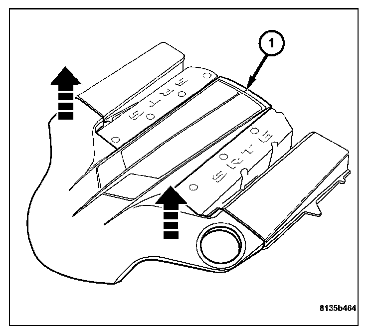 2. Remove the engine cover (1). Grasp both corners of the engine cover, and pull up firmly.