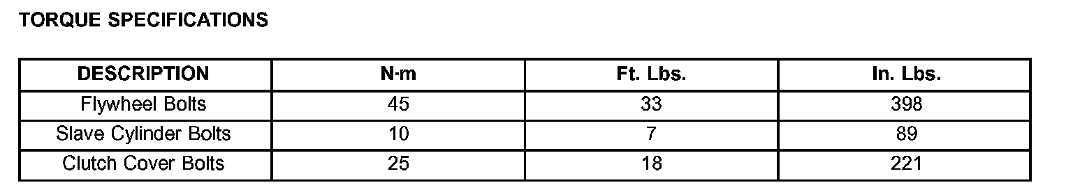 TORQUE SPECIFICATIONS: