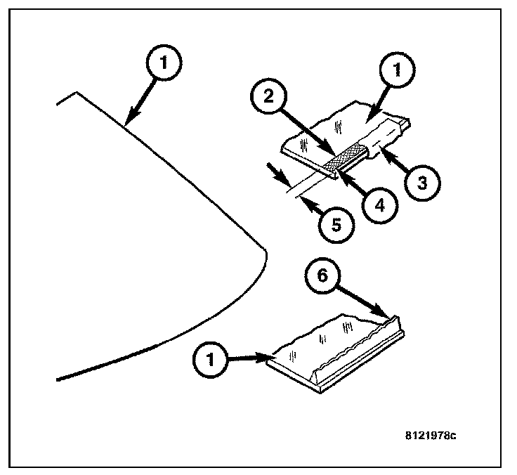 10. Apply fence primer around the perimeter of the windshield opening fence (1). Allow at least 18 minutes drying time.