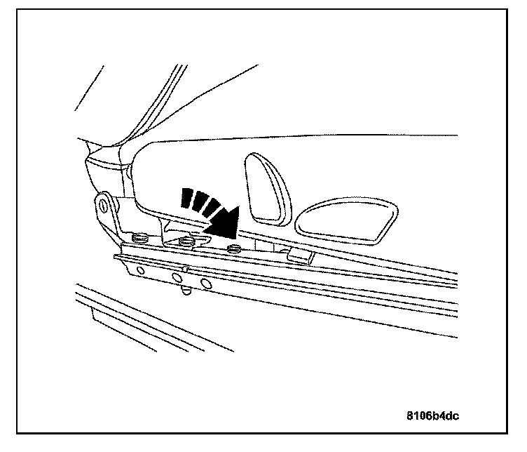 2. Remove the bolt (1) attaching the side panel to the seat base.