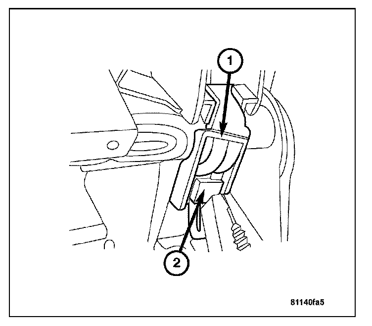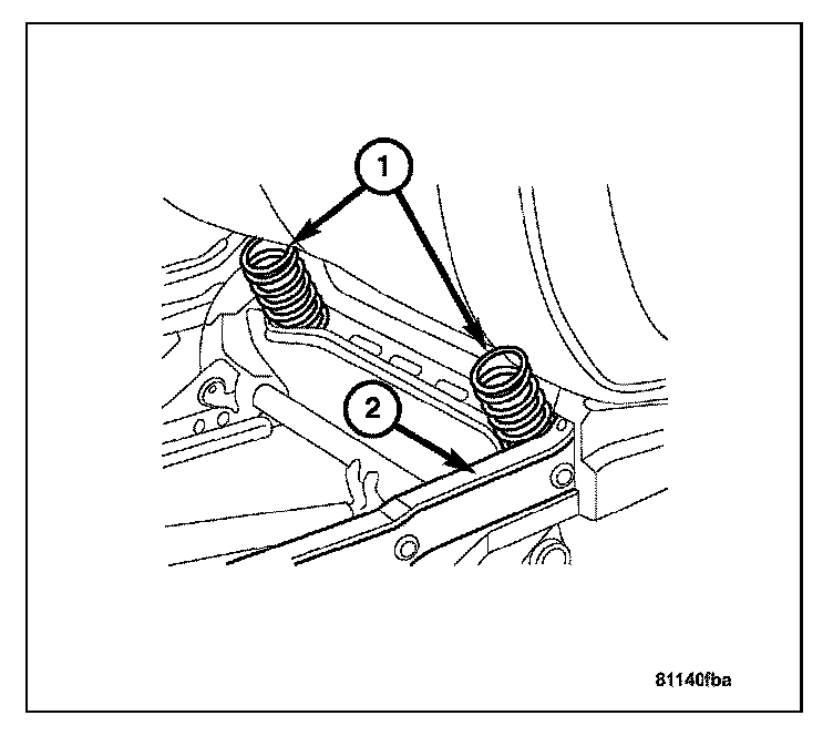 1. Install both springs (1) into the plate springs with the narrow coils pointing downward at an angle and insert into humps on cushion shell (2). Push the seat cushion toward the rear below the seat back.