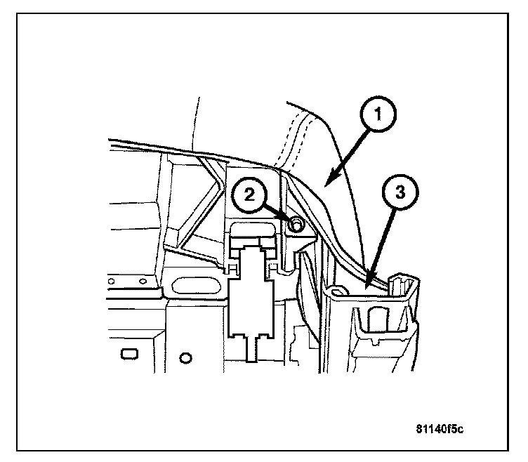 2. Remove the bolt (2) on the front seat (1) to the frame (3).