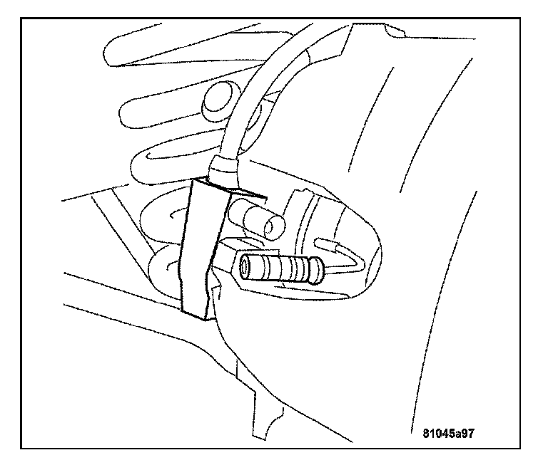 CAUTION: Never allow the disc brake caliper to hang from the brake hose. Damage to the brake hose can result. Provide a suitable support to hang the caliper securely.