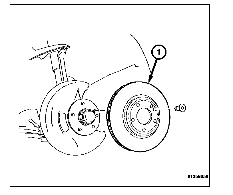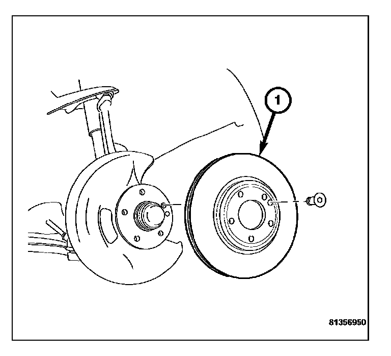 5. Remove the retaining bolt and then remove the brake rotor (1) from the wheel hub.
