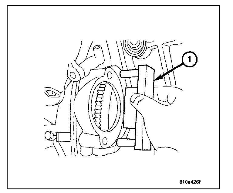 4. Using Special Tool 9102 Flywheel Locking Tool (1), lock the flywheel.