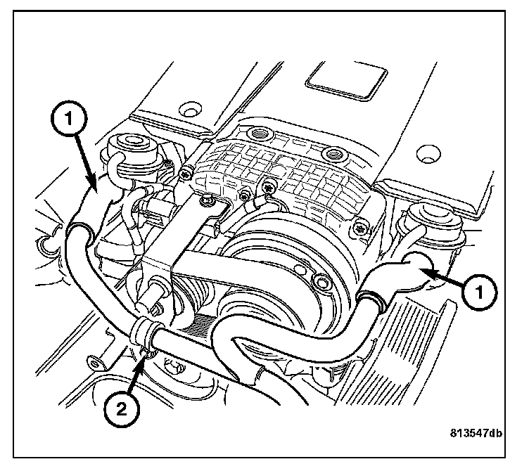 3. Install the air pump tube assembly retaining bolts (2). Tighten the bolts to 10 N.m (89 in. lbs.).
