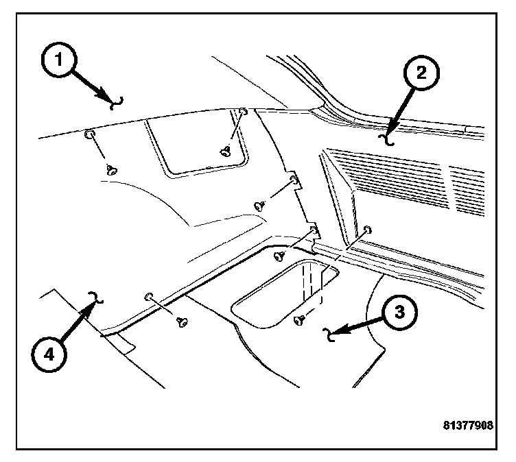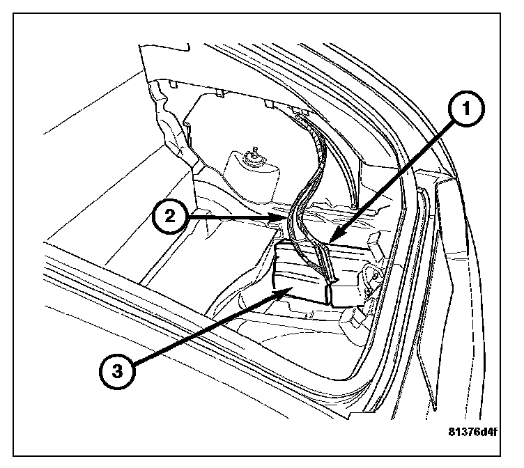 1. Install the central locking pump/security system module (3) into the trunk and connect the air lines (2) and the electrical harness (1).