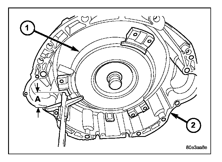 6. Check converter seating with a scale and straightedge. Surface of converter lugs should be at least 19 mm (3/4 in.) to rear of straightedge when converter is fully seated.