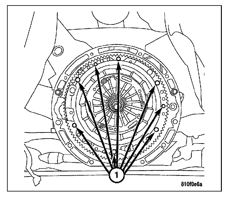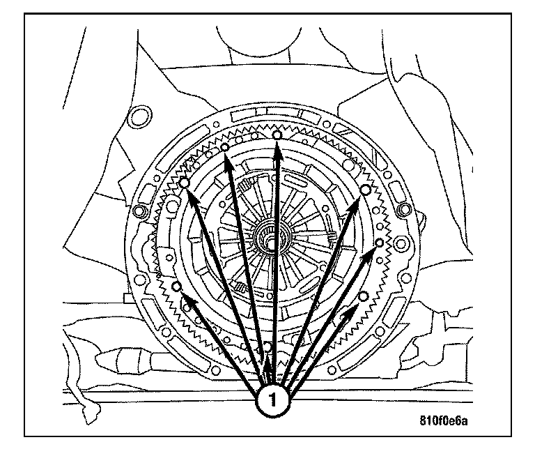 6. Tighten the clutch cover bolts (1) until all bolts are fully seated. Tighten to 25 Nm (18 ft. lbs.).