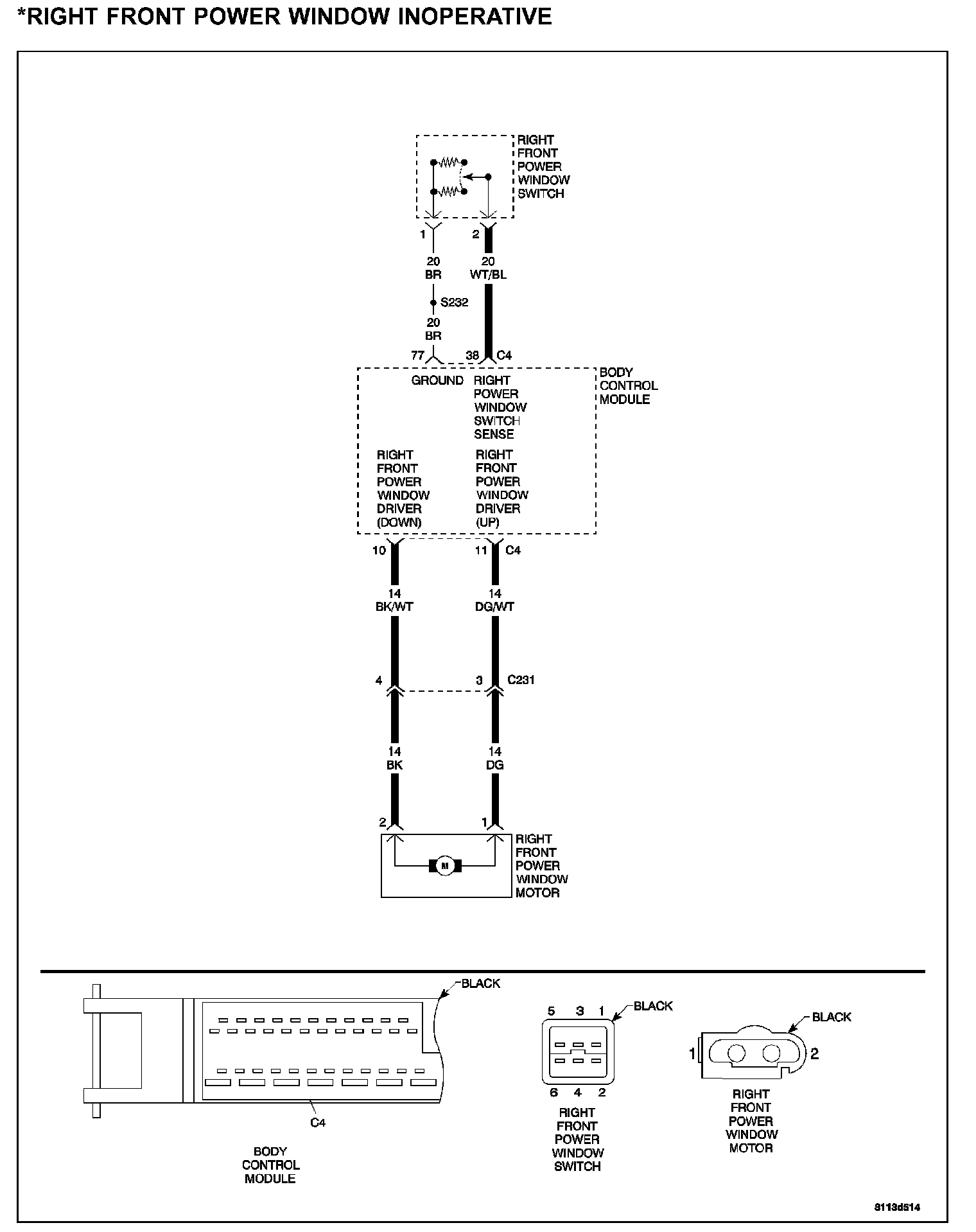 *RIGHT FRONT POWER WINDOW INOPERATIVERight Front Power Window Inoperative: