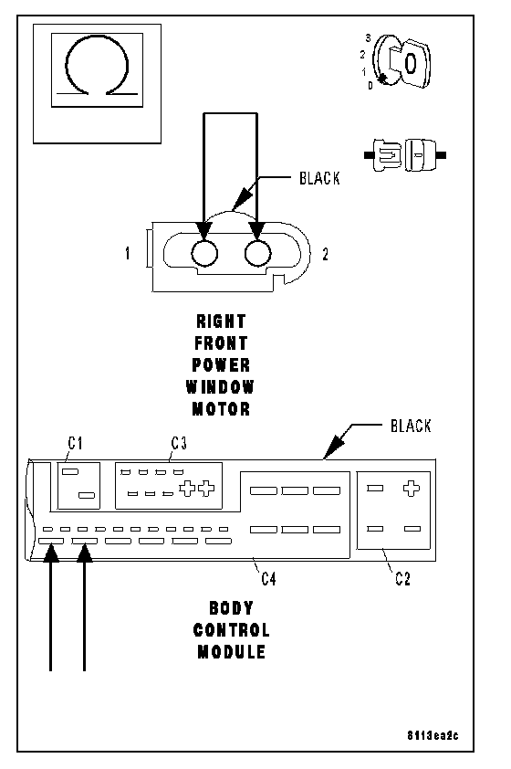Connect a second fused jumper wire to cavity 11 of the BCM C4 harness connector and momentarily connect the jumper to ground. Note the window movement; if the Right front window does not move, reverse the jumper wires at the B(+) and ground connections.