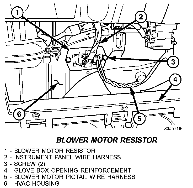 - THE BLOWER MOTOR RESISTOR MAY GET VERY HOT DURING NORMAL OPERATION. IF THE BLOWER MOTOR WAS TURNED ON PRIOR TO SERVICING THE BLOWER MOTOR RESISTOR, WAIT FIVE MINUTES TO ALLOW THE BLOWER MOTOR RESISTORS TO COOL BEFORE PERFORMING DIAGNOSIS OR SERVICE. FAILURE TO TAKE THIS PRECAUTION CAN RESULT IN POSSIBLE PERSONAL INJURY.
