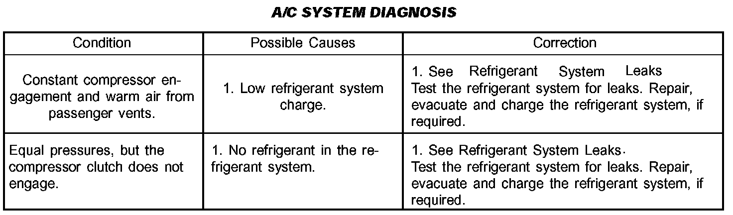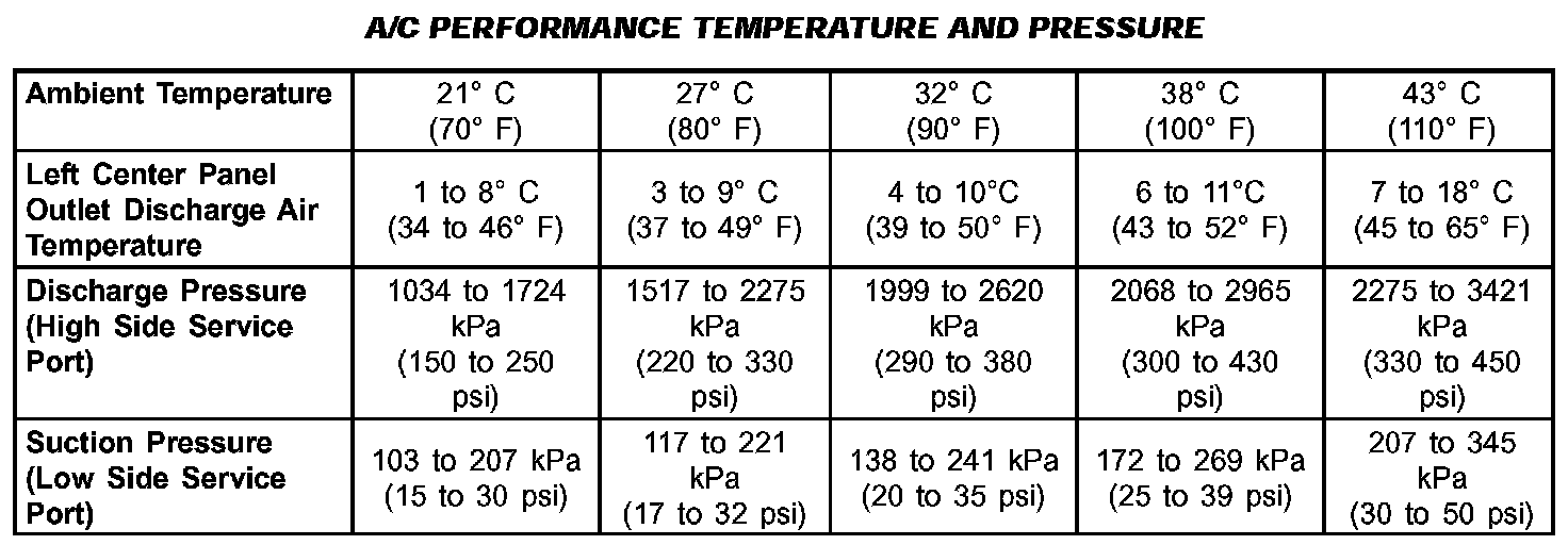 A/C Performance Temperature And Pressure: