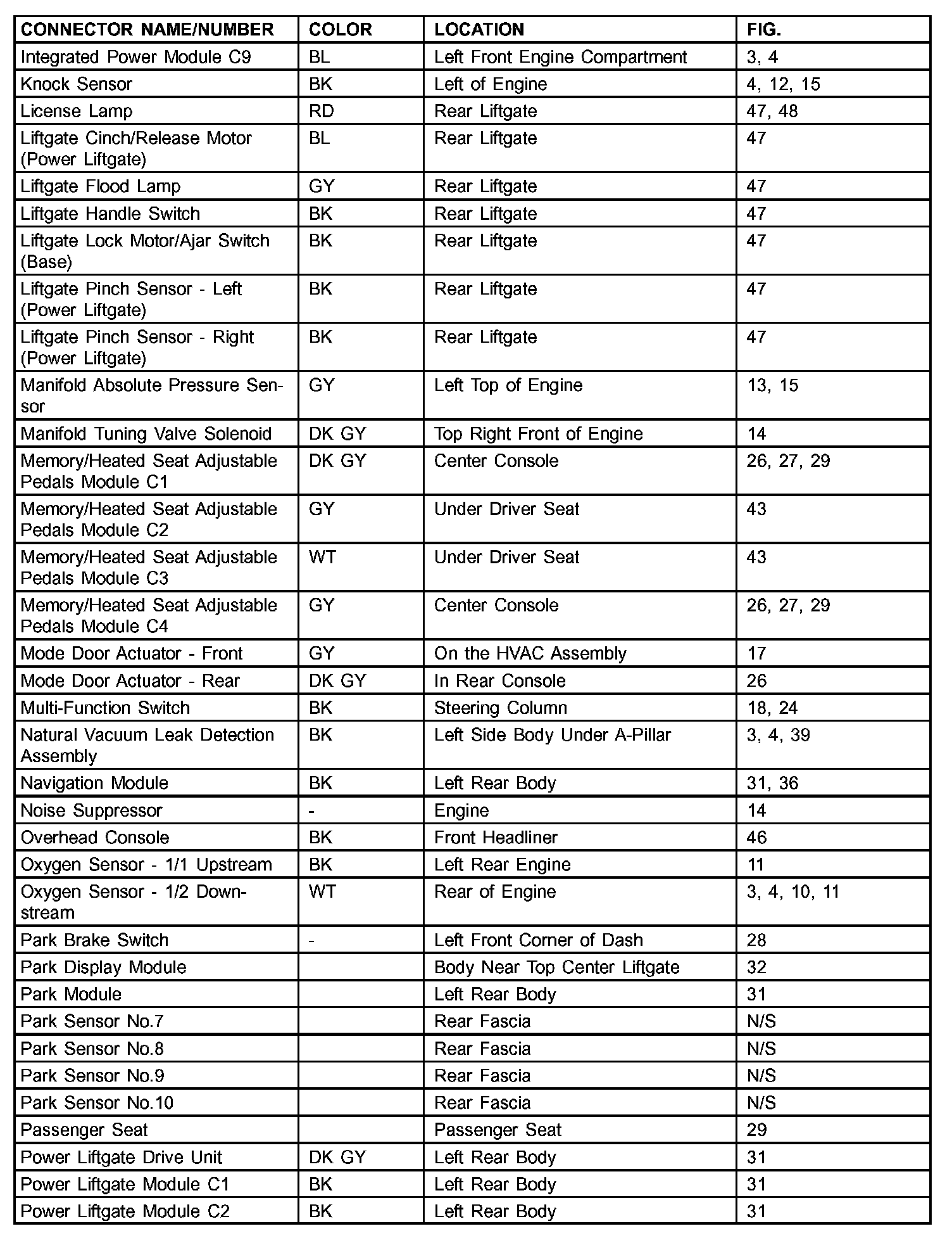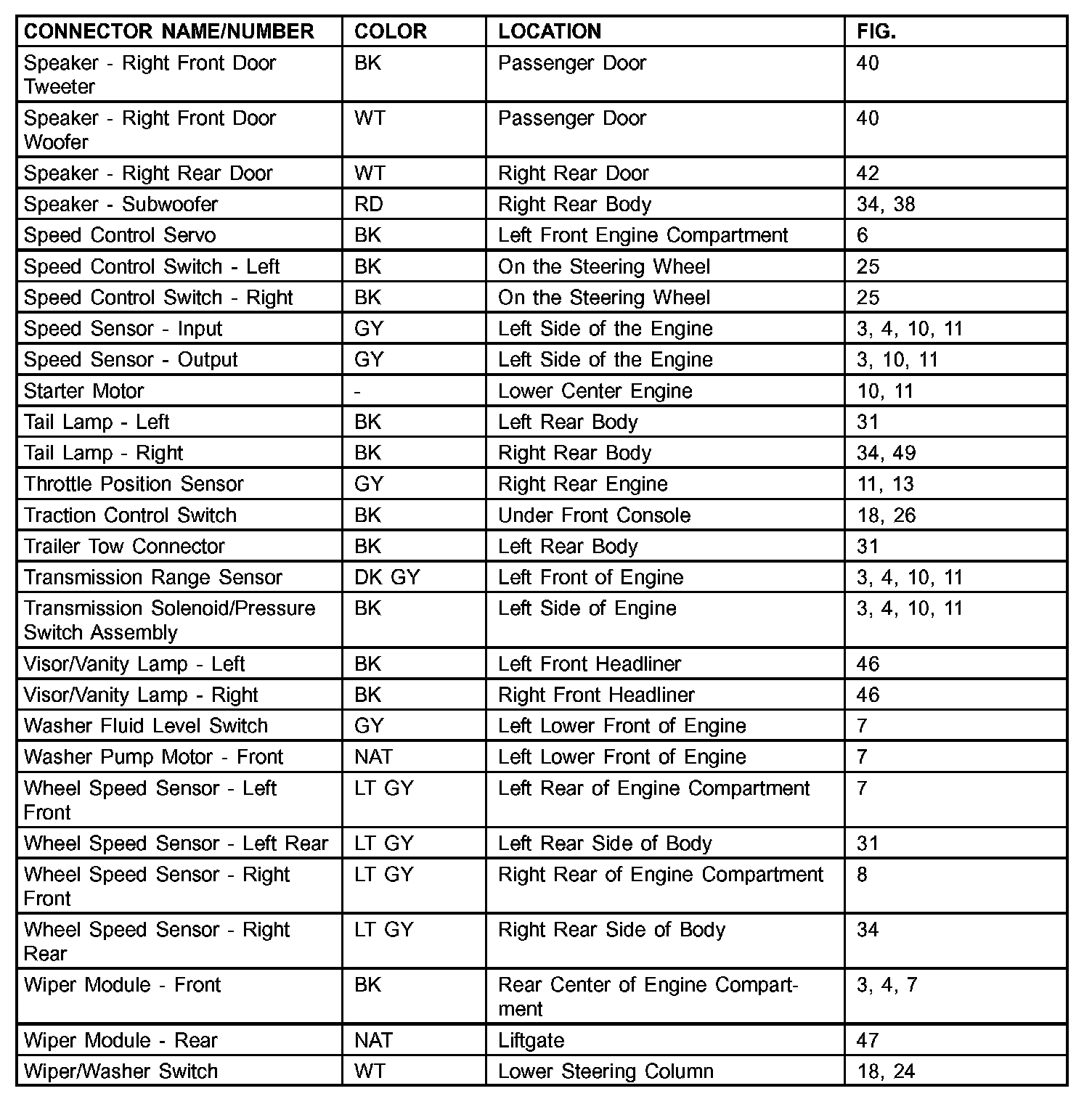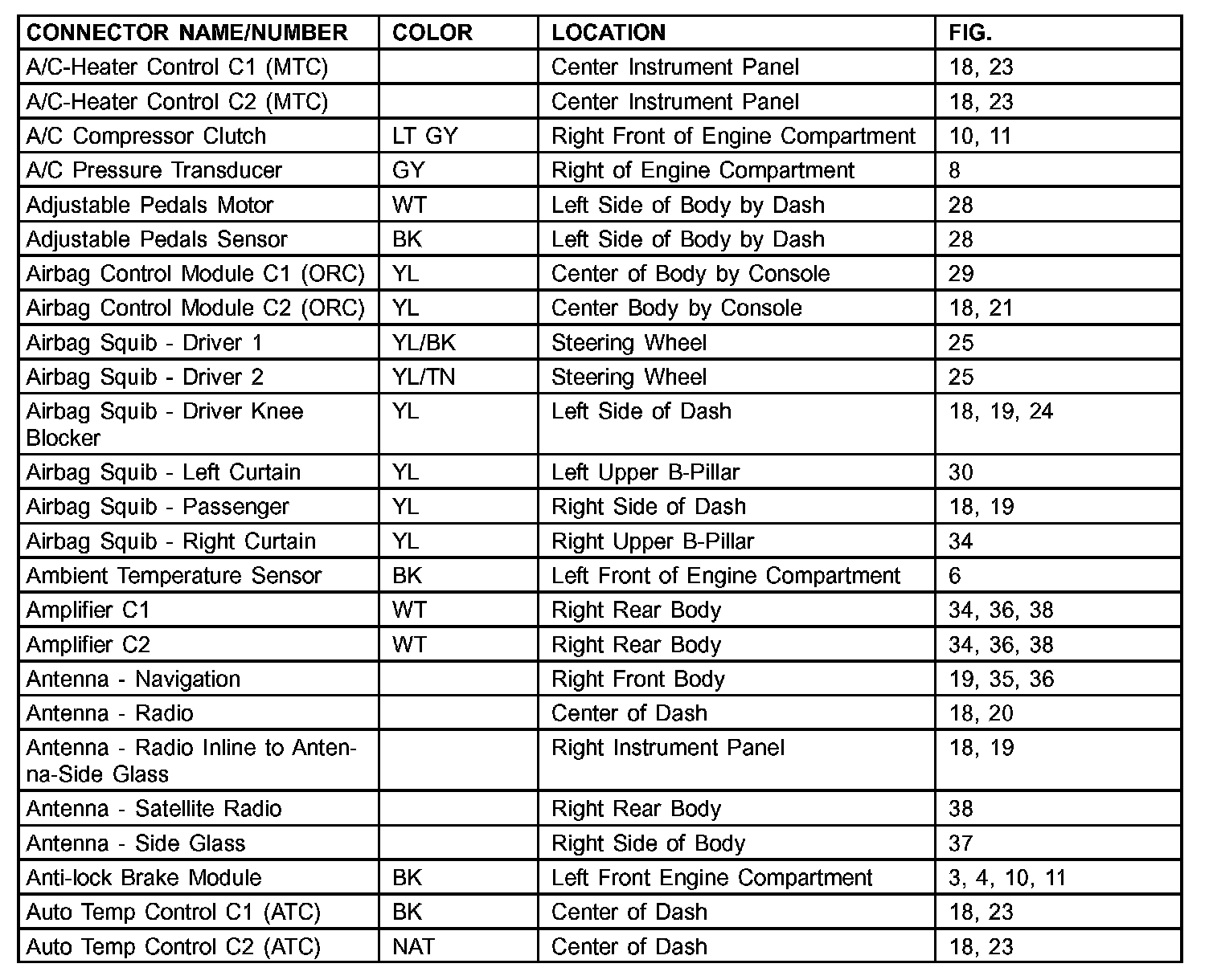 If a link on the index chart to a figure is not provided, that means that the connector and/or figure in question does NOT apply to the vehicle model selected.
