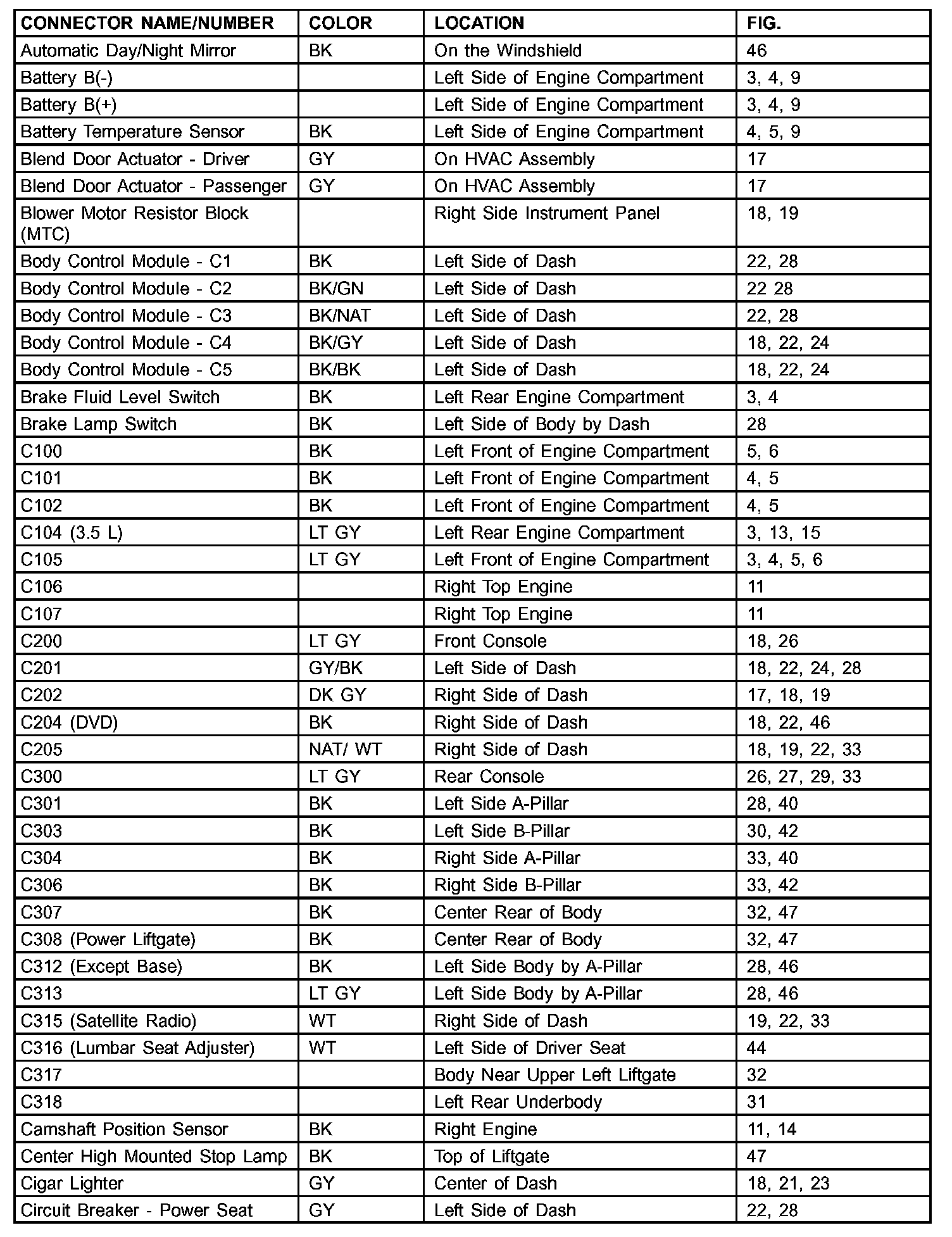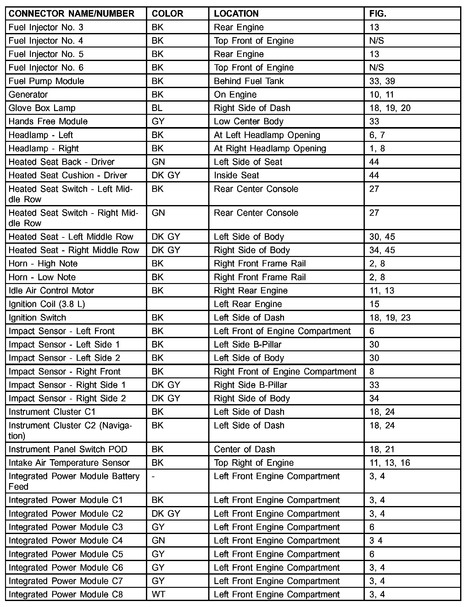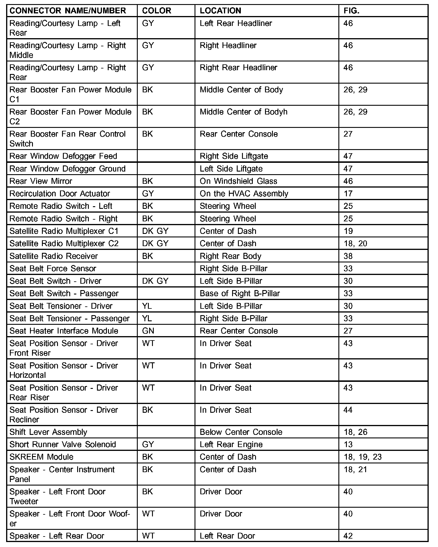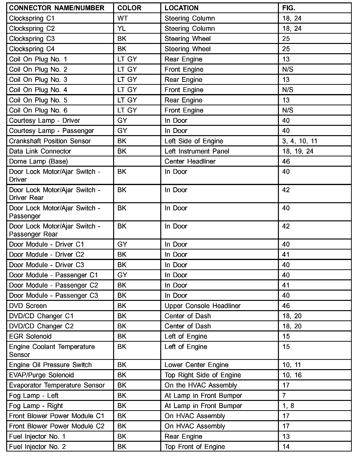 If a link on the index chart to a figure is not provided, that means that the connector and/or figure in question does NOT apply to the vehicle model selected.