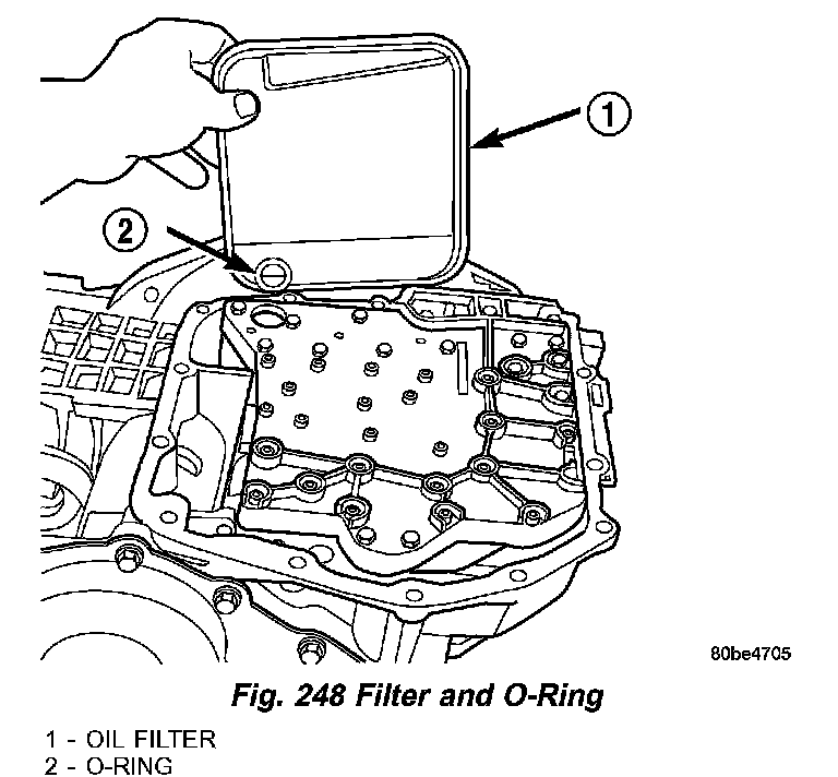 4. Install a new filter and O-ring on bottom of the valve body (Fig. 248).