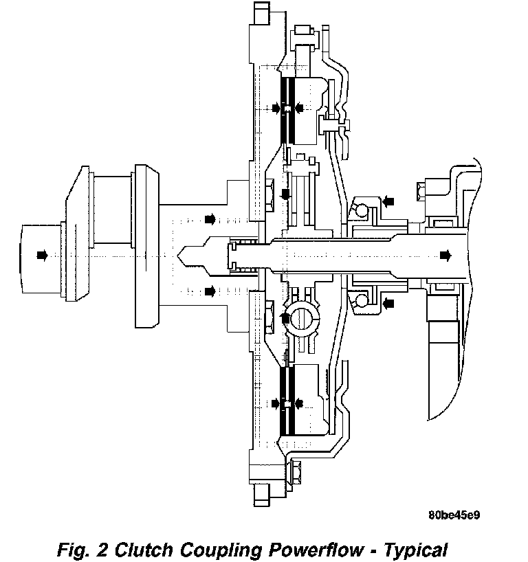 The clutch assembly is designed to transmit power from the engine to the manual transaxle. This is accomplished by the friction and clamping force generated when the spring loaded pressure plate locks the clutch disc to the flywheel (Fig. 2). The clutch disc, which is splined to the transaxle input shaft, transmits power until the center of the diaphragm spring is depressed, and the clamp force is removed from the disc.