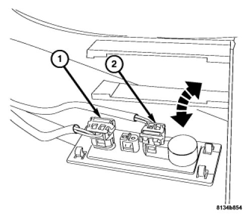 6. Connect the washer nozzle harness connector (s) (1-2) to the thermoswitch. Install the thermoswitch into the cowl grill.