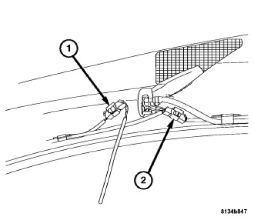NOTE: If the main washer nozzle harness connector (1) was disconnected, reconnect at this time.