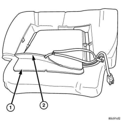 NOTE: Make certain the seat wire harness is correctly routed through the seat and seat back. The excess wire between the cushion and back elements should be securely tucked between the rear of the cushion foam and the rear carpet flap of the trim cover.