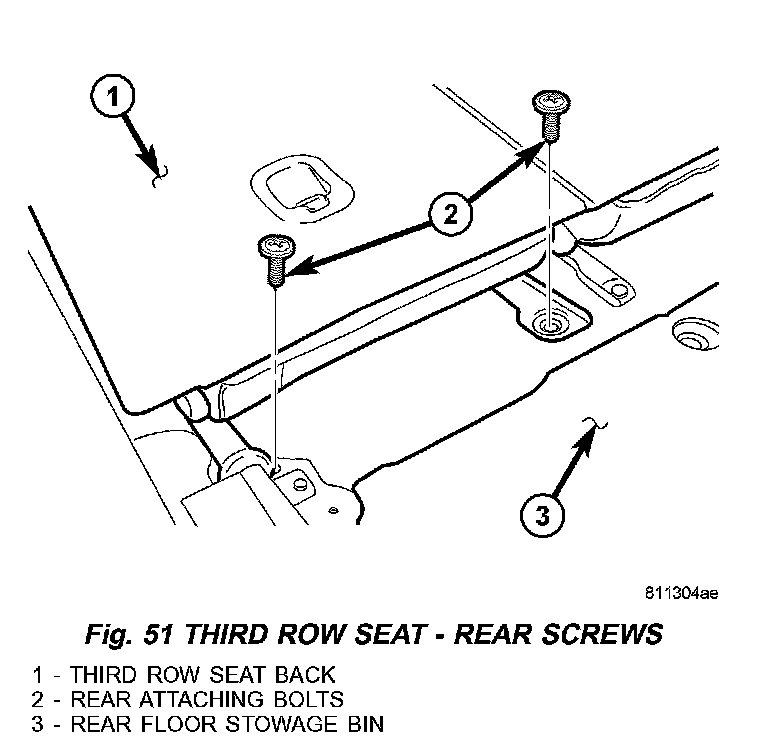 4. Install third row seat two rear attaching bolts and tighten to 88 N.m (65 ft.lbs.) torque (Fig. 51).