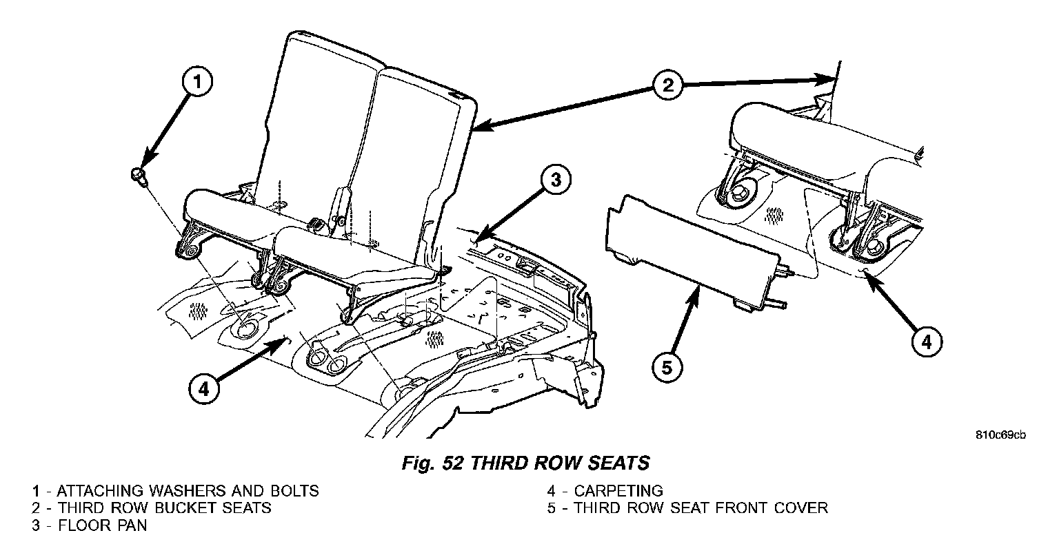 3. Remove third row seat rear two attaching bolts (Fig. 51).