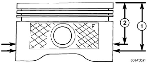 The piston and cylinder wall must be clean and dry. Piston diameter should be measured 90 degrees to piston pin at size location shown in.