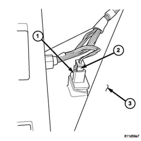 1. Install the evaporator temperature sensor (1) into the top of the HVAC housing (3). Make sure the sensor is fully engaged to the housing.