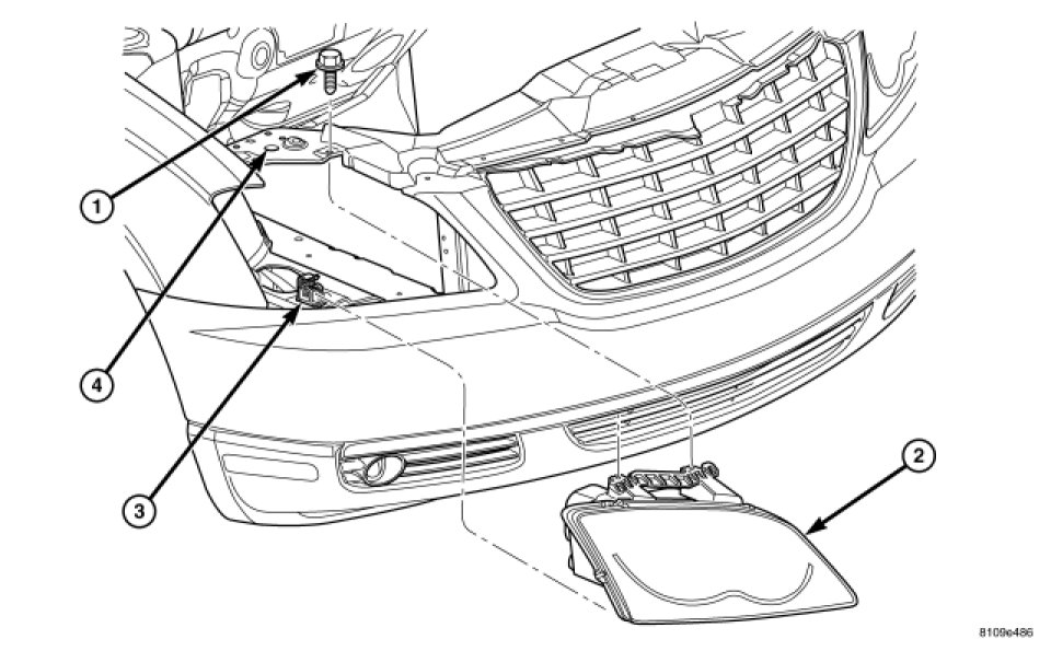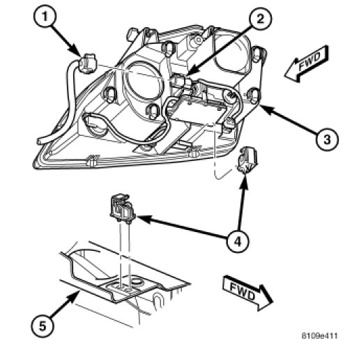 1. Transfer the lamps to the new front lamp unit (3) if replacing unit.