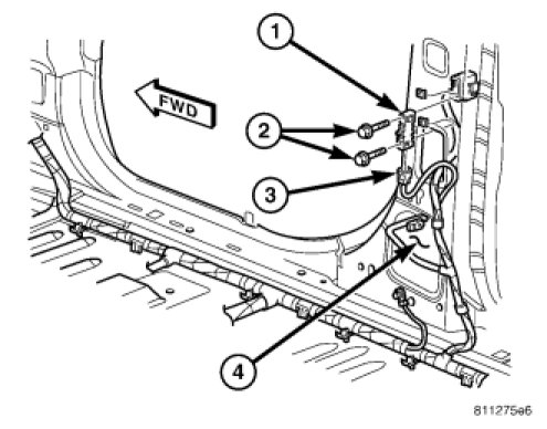 8. Install the two retaining screws (2) to the impact sensor (3). Tighten screws to 7 Nm (62 in. lbs.).
