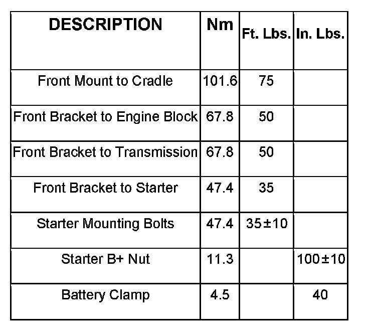 Starting System: Specifications