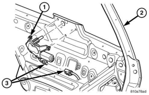 2. Connect the rear wiper motor electrical connector (3).