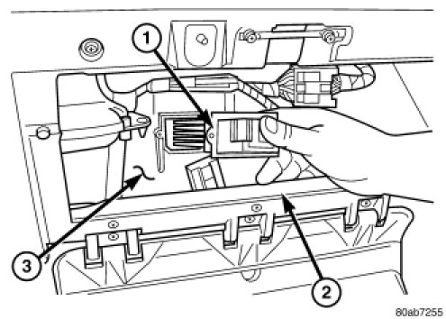 2. Remove the glove box from the instrument panel (2).