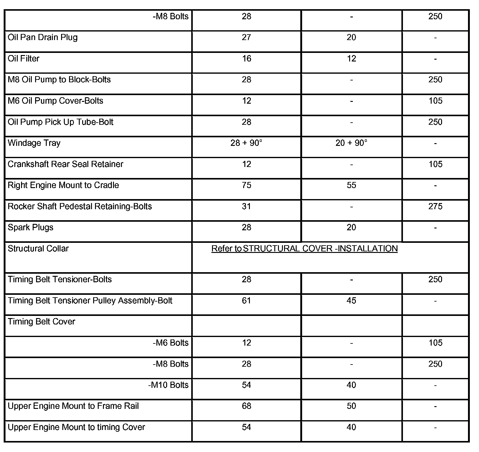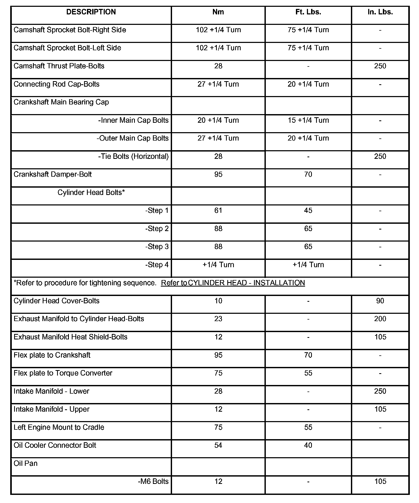 Engine Torque Specifications