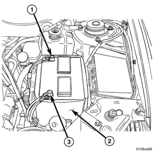 5. Connect the battery negative cable (3). Torque terminal fastener to 4.5 Nm (40 in. lbs.).