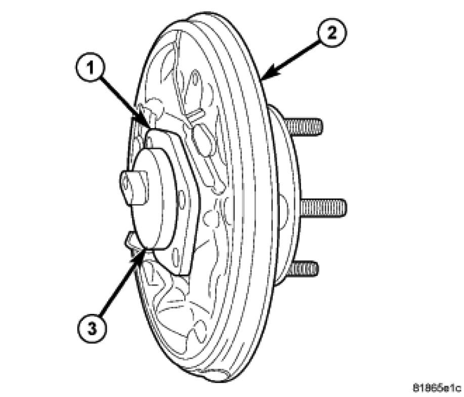 1. Assemble the hub and bearing (3) through the support plate (2) and install the spacer (1) on the rear of the assembly.