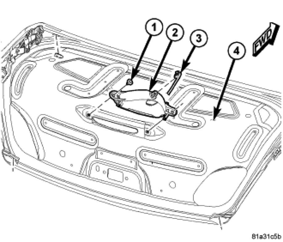 4. Remove screws (1) attaching CHMSL unit (2) to decklid (4).