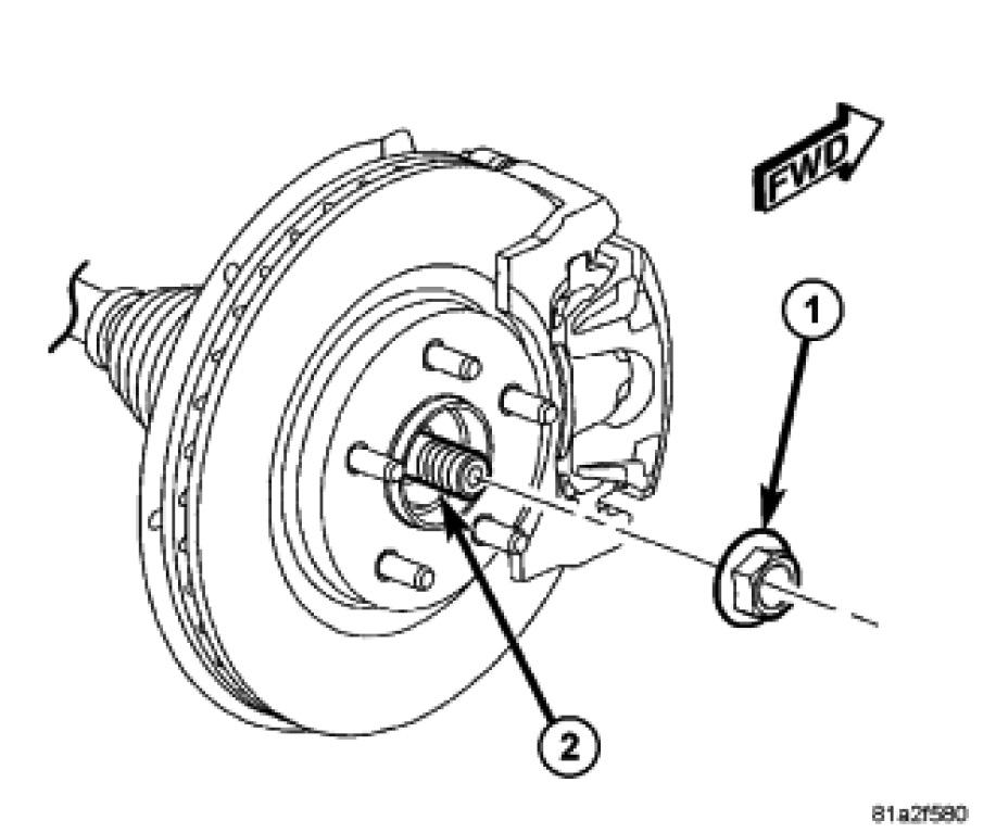 1. Install the hub and bearing (1) by sliding it over the half shaft and into the knuckle.