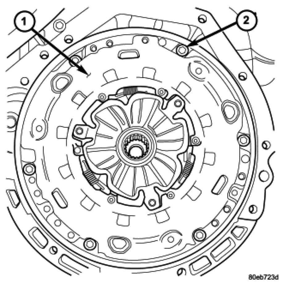 Using a "criss-cross" pattern, torque pressure plate bolts (2)